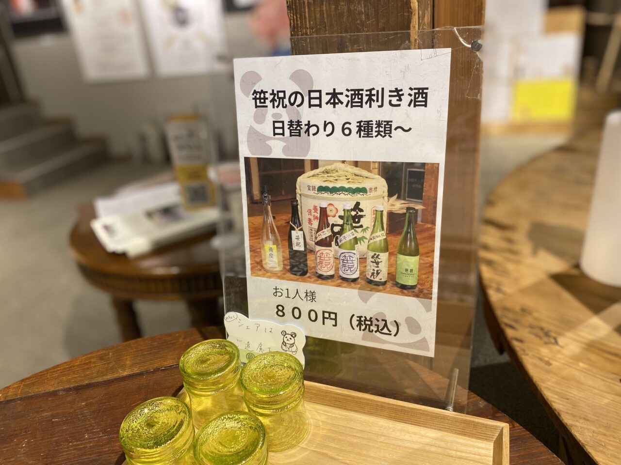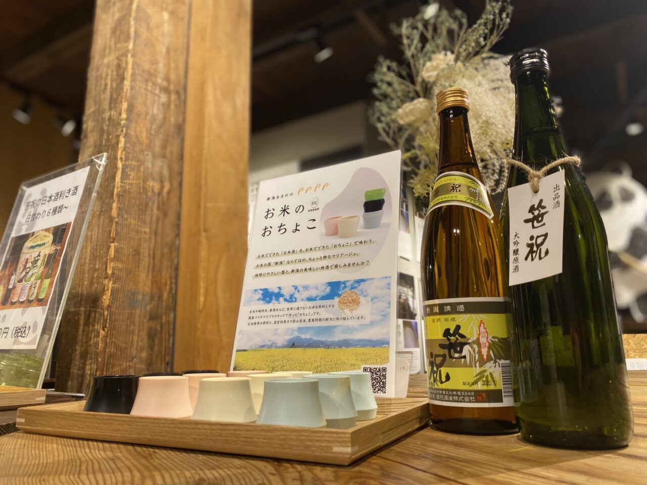 新潟市西蒲区の酒蔵「笹祝酒造」の利き酒コーナーで、お米(非食用米)の「おちょこ」で利き酒ができます。