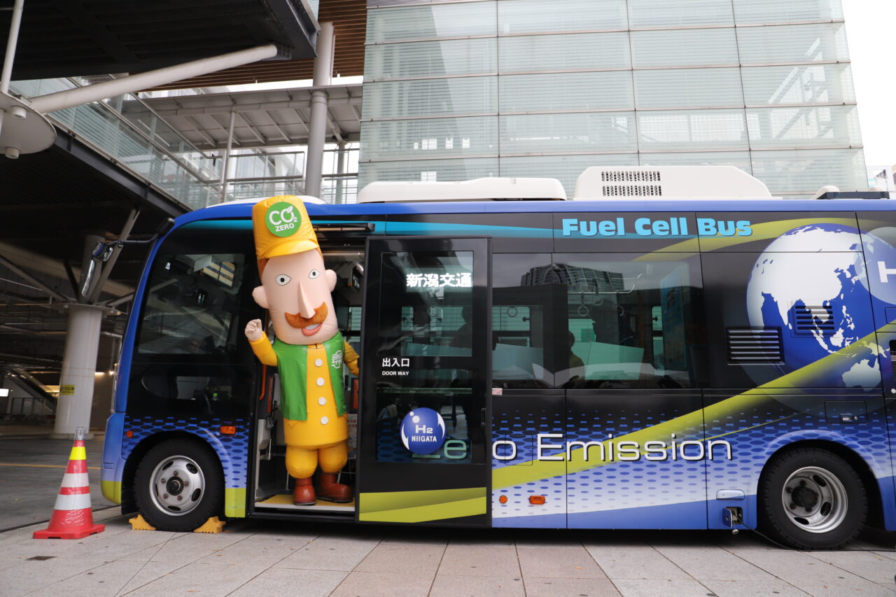 昨日(11/9)に新潟駅で実施した「にいがた環境フェスティバル」の小型燃料電池バスコーナーで配布しました。このバスは、「水素」と空気中の「酸素」をバスに積んだ小型燃料電池内で合体させて自力で作った「電気」で走ります。