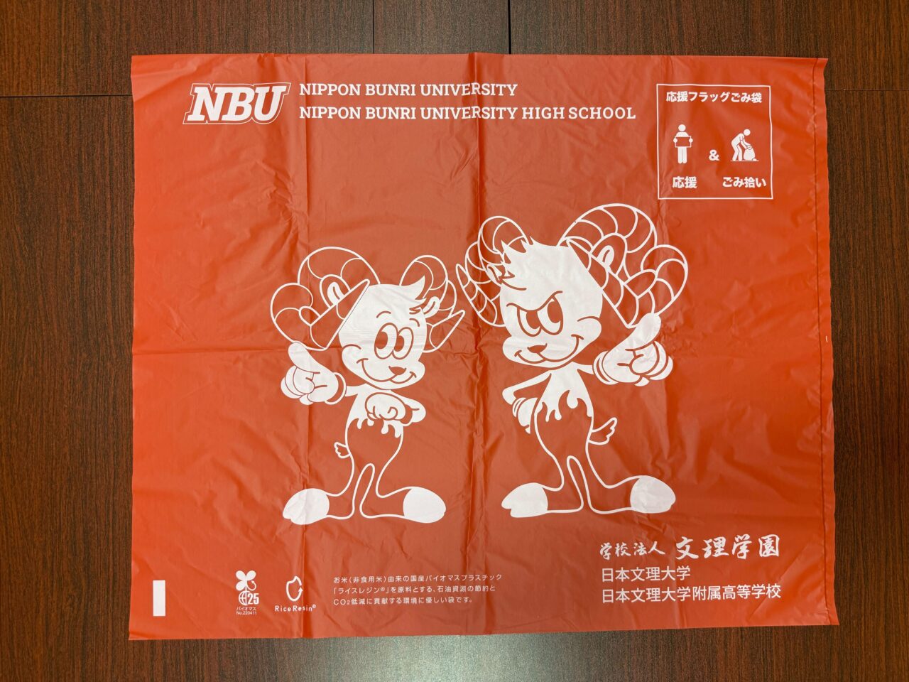【バイオマスレジン熊本】 大分県の日本文理大学野球部の応援フラッグ兼ごみ袋に採用されました。