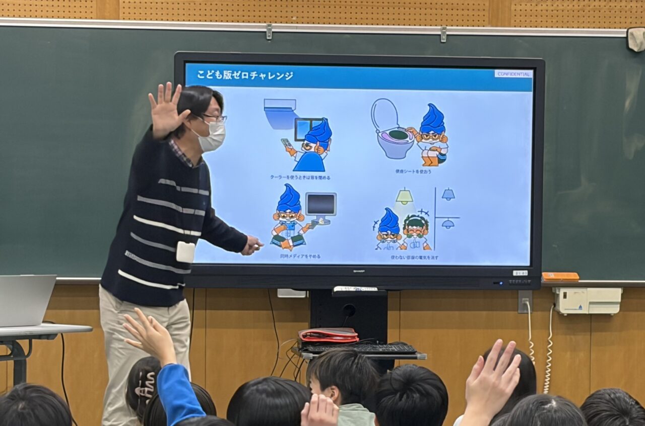 更に、長岡市立宮内小学校の児童が考えた自分たちでできる地球温暖化防止に向けた取組「こども版ゼロチャレンジ」も紹介。水原小学校のみなさんもできる事は何があるかも、考えました。