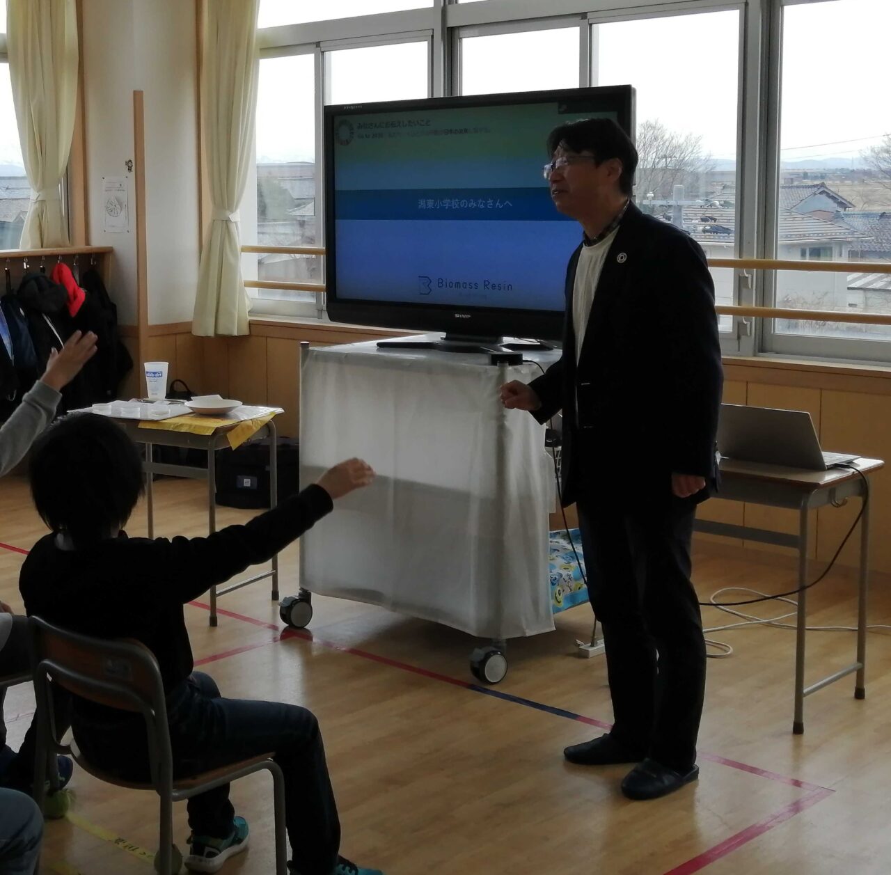 昨日(3/6)の「ごみ袋のお披露目と環境学習」では、資源米を原料したお米のバイオマスプラスチック製ごみ袋の活用意義や児童自身ができる事など45分の授業を通じてお話しました。(たくさんの質問も頂きました。)