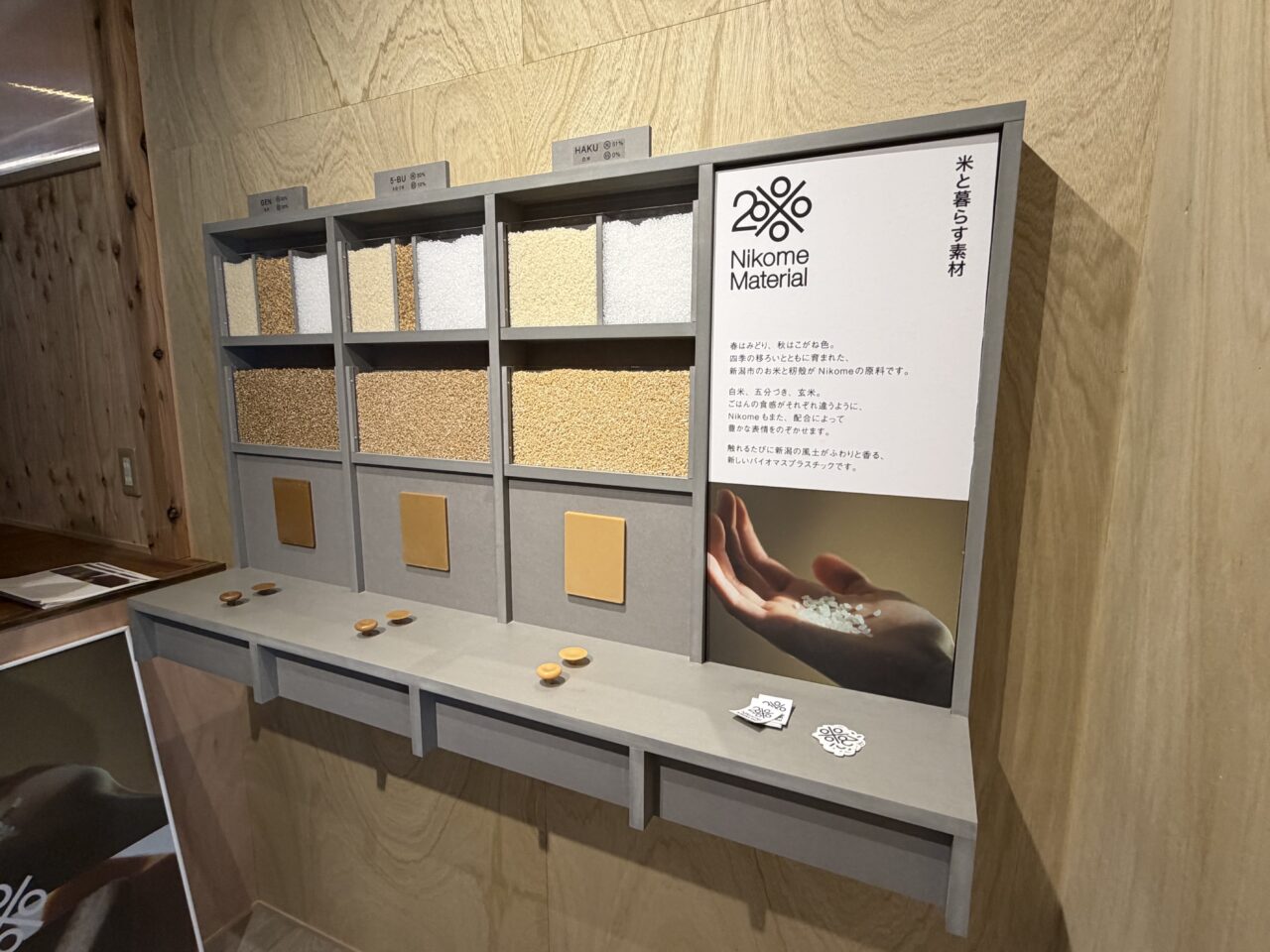 バイオマスレジンマーケティングが新潟市のニモウサクさんと連携して開発を行っている新潟発の新しいバイオマスプラスチック「Nikome」。